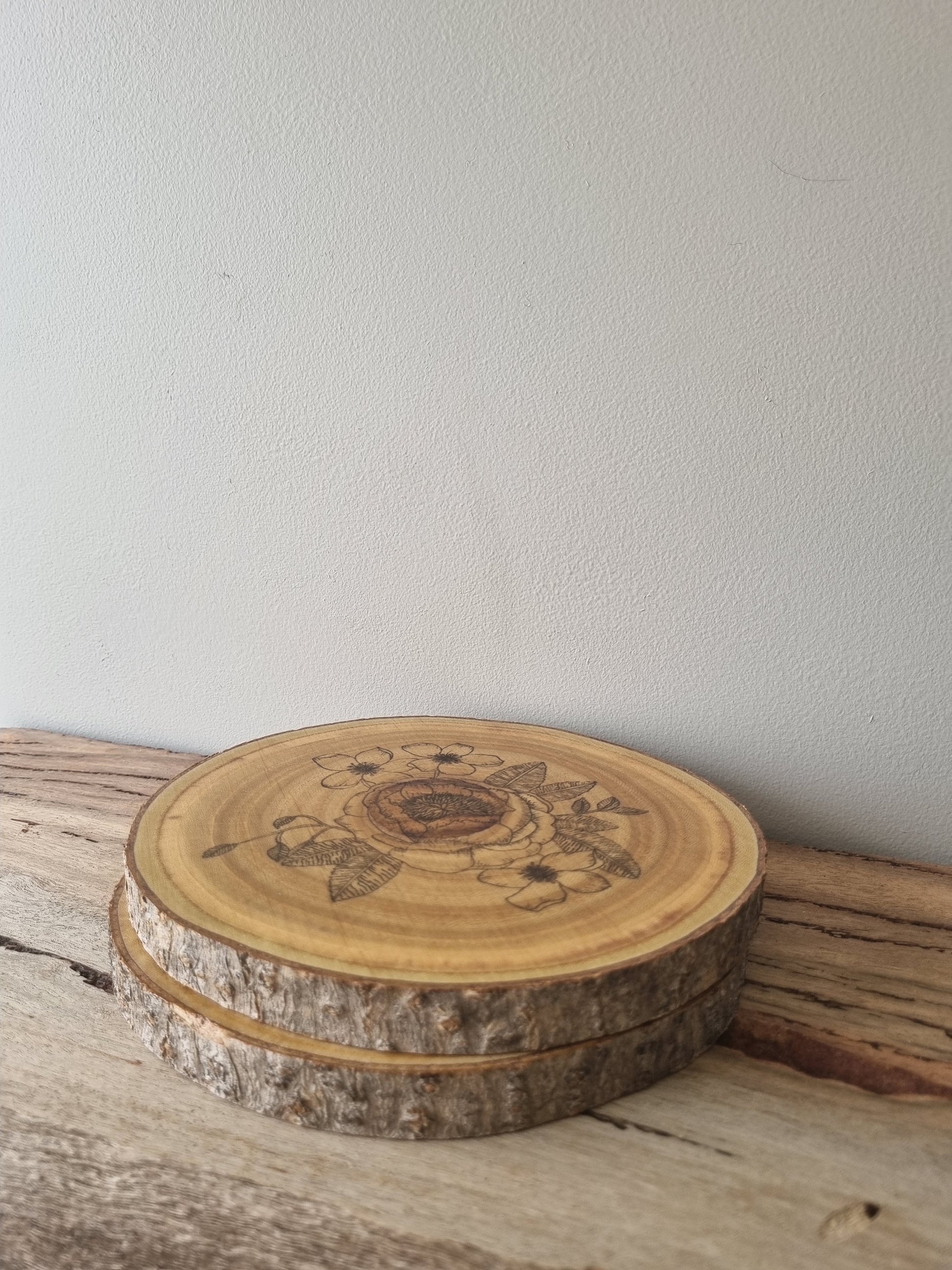 Large, laser engraved wooden coasters, set of 2.